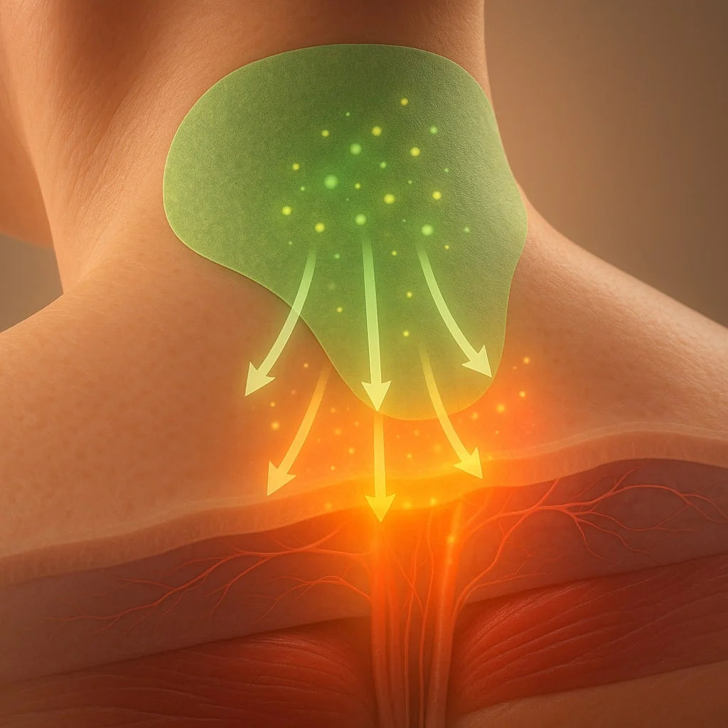 At the same time, our herbal blend is absorbed through the skin, supporting deeper relief by targeting inflammation and easing tension around the neck area.
